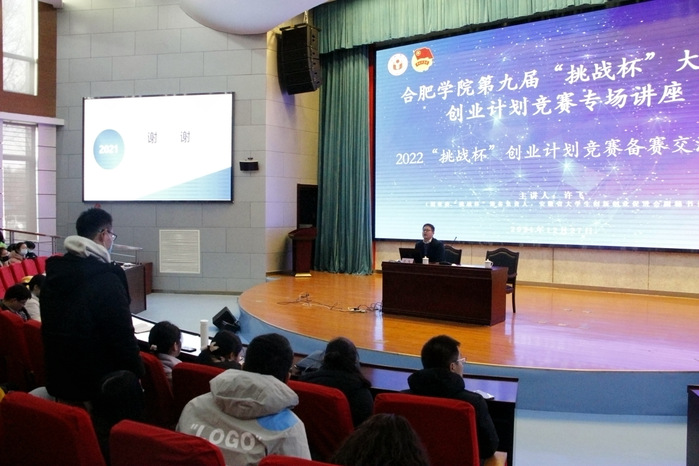 为了切实做好2022年“挑战杯”安徽省和中国大学生创业计划竞赛参赛准备,激发大学生创业活力,服务大学生创业行动,12月27日,我校邀请团省委学校部许飞老师来我校开展专题培训,培训题目为《2022年“挑战杯”安徽省大学生创业计划竞赛交流分享》,我校200余名有意向参赛的指导教师和学生到场参加培训。