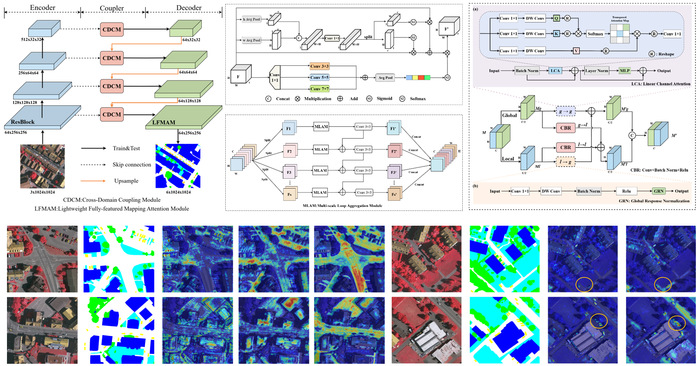 在复杂场景遥感语义分割方向,团队提出轻量级跨域耦合网络(LCCN)。该网络创新性采用“Encoder-Coupler-Decoder”架构,耦合器中通过跨域耦合模块实现多尺度特征提取与全局信息建模,解码器中借助轻量级全特征映射注意力模块捕捉多维度特征交互,优化复杂场景下的语义分割效果。王晓峰教授为第一作者,陈岩博士为通讯作者,日韩欧美福利视频_黑人巨大人精品欧美三区_欧美成人另类人妖_欧美在线精品一区二区三区_欧美一区二区三区性视频_日韩精品欧美视频_性欧美极品xxxx欧美一区二区人工智能与大数据学院为第一完成单位。(论文标题:Cross-Domain Coupling Network With Lightweight Fully Featured Mapping and Loop Aggregation for Semantic Segmentation of High-Resolution Remote Sensing Images,引用链接:https://ieeexplore.ieee.org/document/11129080)