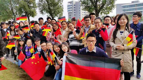 10月30日上午,秋意渐浓,但合肥学院数千名师生却热情高涨,难掩兴奋,大家举着中德两国国旗和精心准备的欢迎标语,夹道欢迎总理的到来。两国总理走近人群,与师生们握手并亲切交谈,在场学生纷纷表示,“总理十分热情,我还和总理握了手,感觉总理非常亲切,这是我最珍贵的记忆。”李克强总理亲切地与管理系王晓艳老师交谈,王晓艳向总理介绍了合肥学院中德合作专业的老师和学生。总理看到同学们高举的欢迎语并向大家表示问候,2013级物流管理专业的程奇峰同学难掩心中激动,说:“终于等到您了,总理。”总理鼓励同学们,好好学习,将来事业有成。