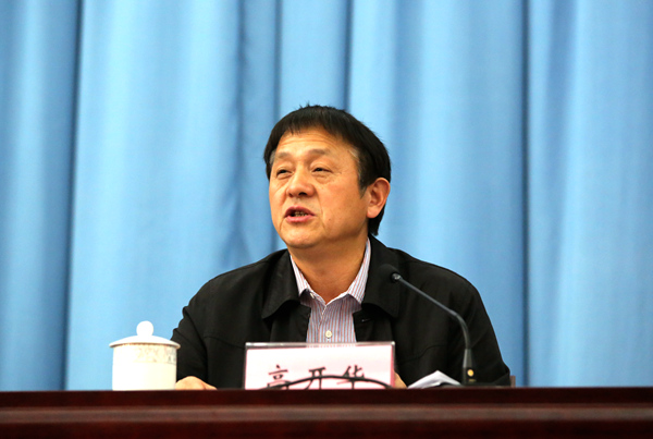 4月13日,我校召开校级领导班子和领导干部2015年度综合考核干部教师大会。省委第二十考核组组长、省委教育工委原常务副书记、省政协教科文卫体委员会副主任高开华,副组长、省委教育工委副书记王佩刚和考核组全体成员出席会议。