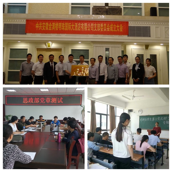 外语系党总支会同经开区直党委,指导帮助非公企业金满楼明珠国际大酒店成立了中共金满楼支委会。机关第三党总支、公体直属党支部组织党员到金寨革命博物馆和烈士纪念馆参观学习,零距离感受老区深厚的红色文化,接受革命传统教育。中文系党总支结合党员发展工作,在全系推行党员发展对象预审答辩制,在党章测试合格的基础上,进行以党的知识为主要内容的答辩,促使党员发展对象对党的基本知识、基本理论、基本纲领的学习和掌握。旅游系党总支在学生党员中开展了“学党章党规、学系列讲话、做合格党员”主题演讲比赛,8位学生党员立足自身学习生活,结合“两学一做”学习教育,以生动的故事、饱满的情感、精彩的表现,诠释了旅游系学生党员的良好风貌。