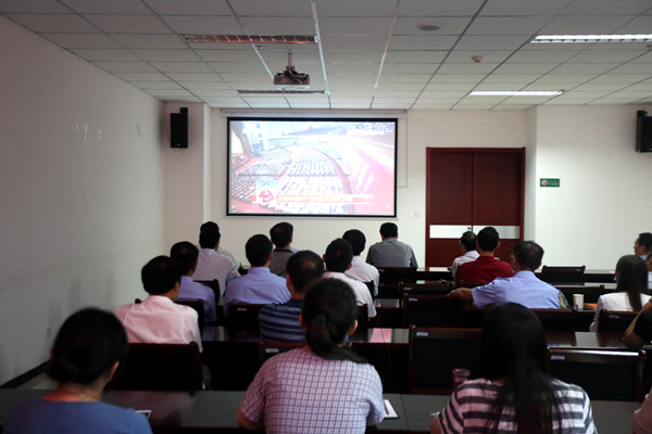 7月1日上午,庆祝中国共产党成立95周年大会在人民大会堂举行。合肥学院各党总支、直属党支部认真组织本单位全体党员同志集体收听收看。在行政楼一楼会议室,党委书记蔡敬民、纪委书记洪家友、副院长刘建中、督导员郑永红同机关第一党总支的党员同志们一起集中收看中国共产党成立95周年庆祝大会的直播,认真学习了中共中央总书记、国家主席、中央军委主席习近平发表的重要讲话。
